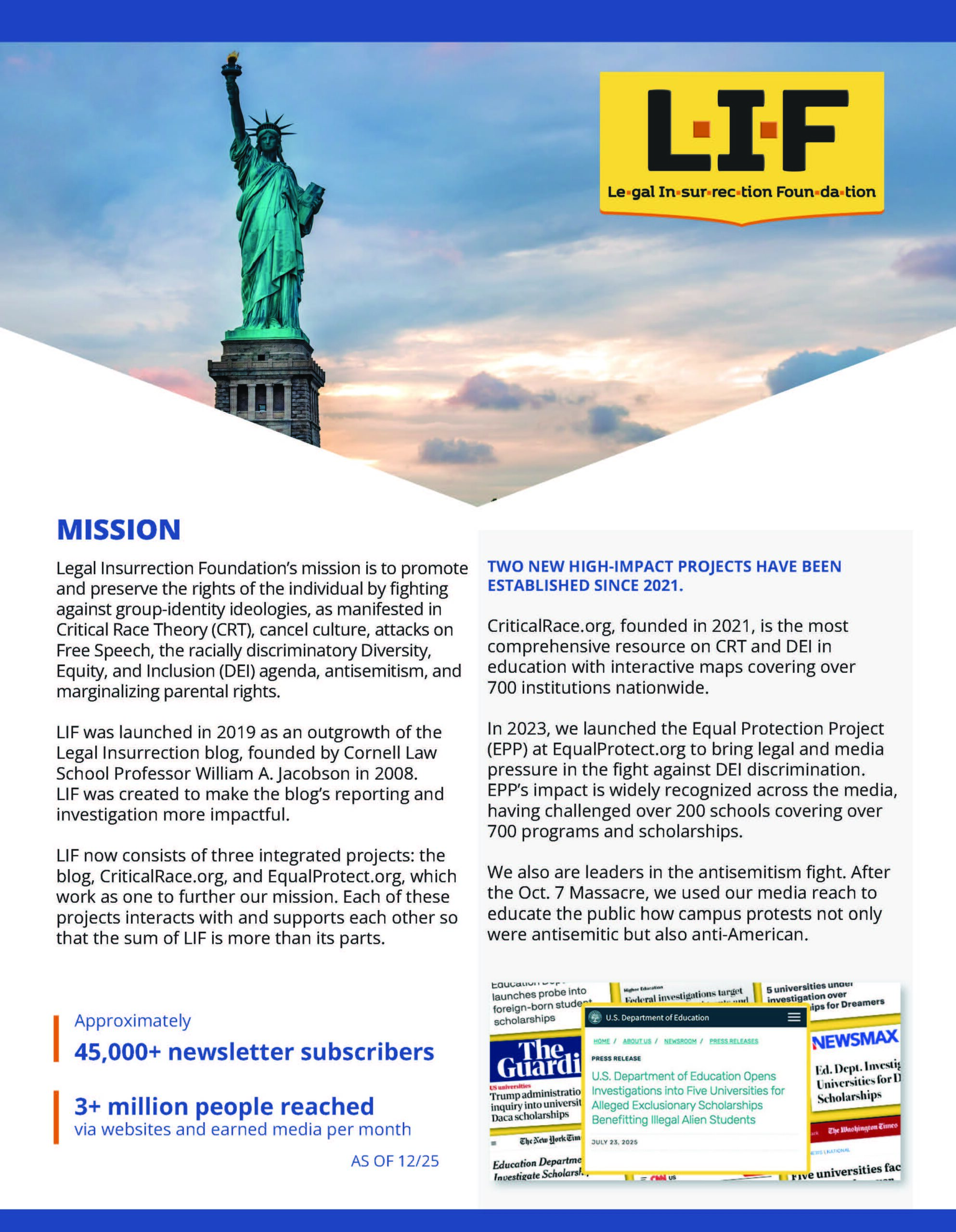 The Legal Insurrection Foundation (LIF) is a Rhode Island tax-exempt 501(c)(3).